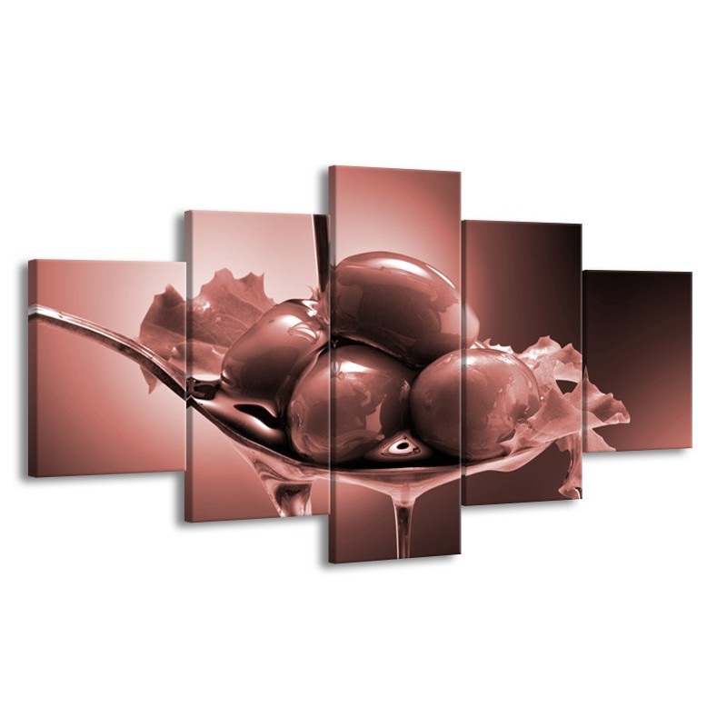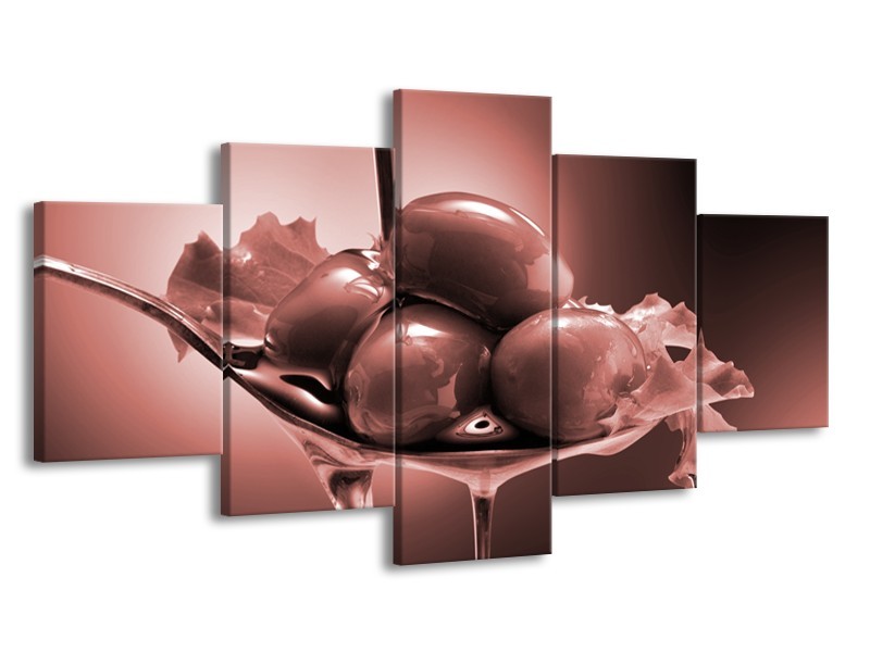Canvas Schilderij Olijven, Keuken | Bruin, Rood | 150x80cm 5Luik