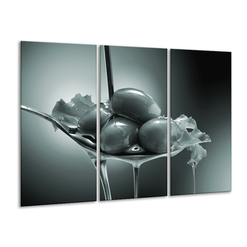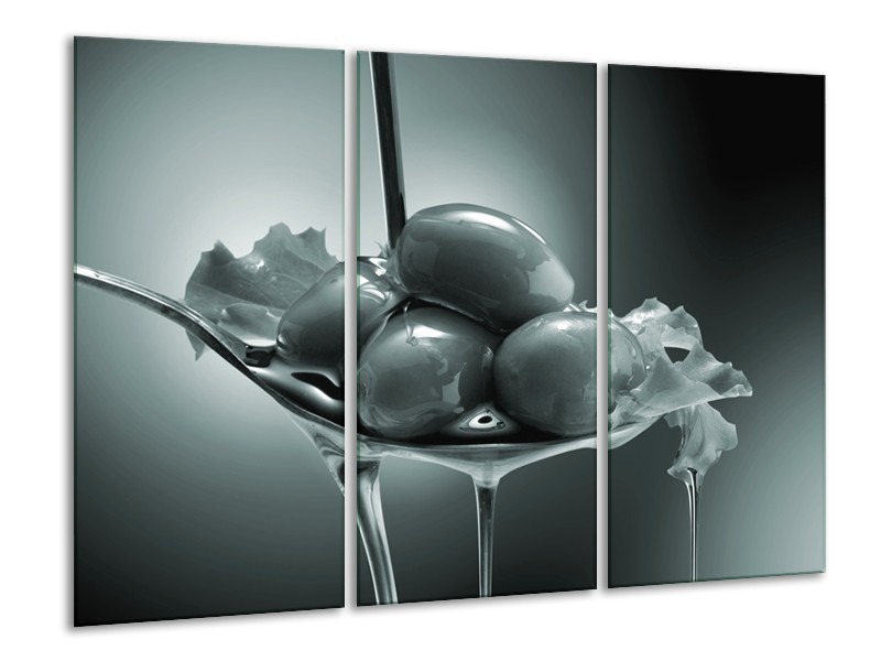 Canvas Schilderij Olijven, Keuken | Grijs, Groen | 120x80cm 3Luik