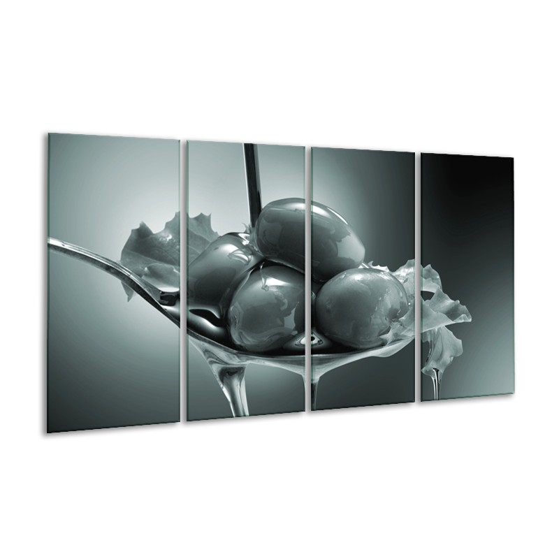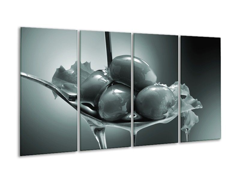 Canvas Schilderij Olijven, Keuken | Grijs, Groen | 160x80cm 4Luik