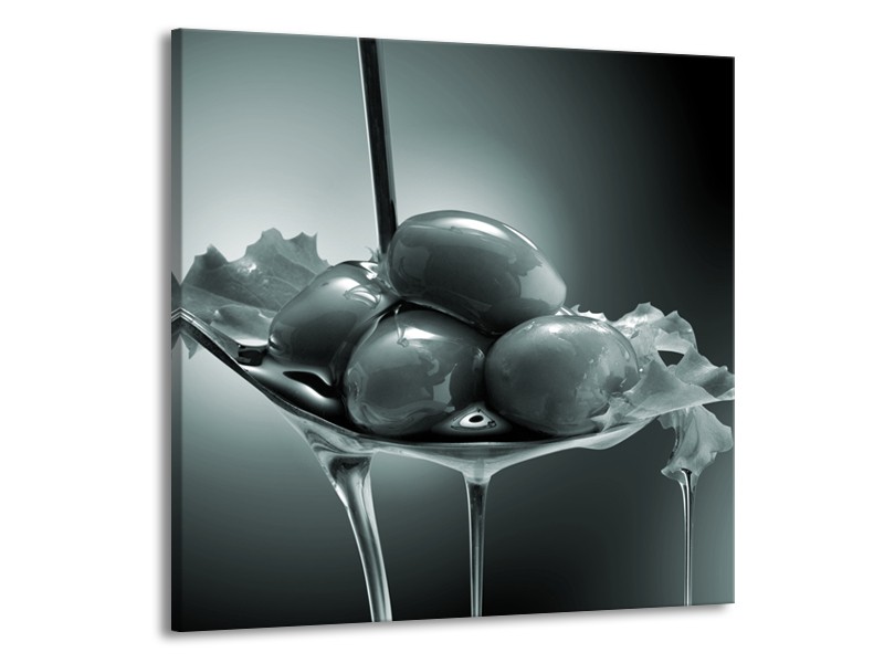 Canvas Schilderij Olijven, Keuken | Grijs, Groen | 70x70cm 1Luik