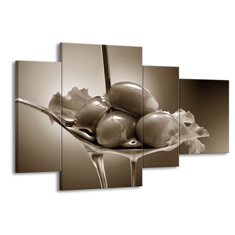 Canvas Schilderij Olijven, Keuken | Sepia | 120x75cm 4Luik