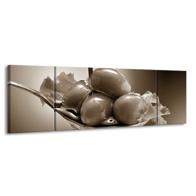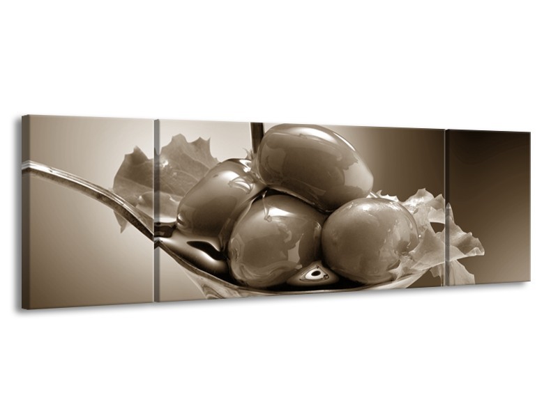 Canvas Schilderij Olijven, Keuken | Sepia | 170x50cm 3Luik