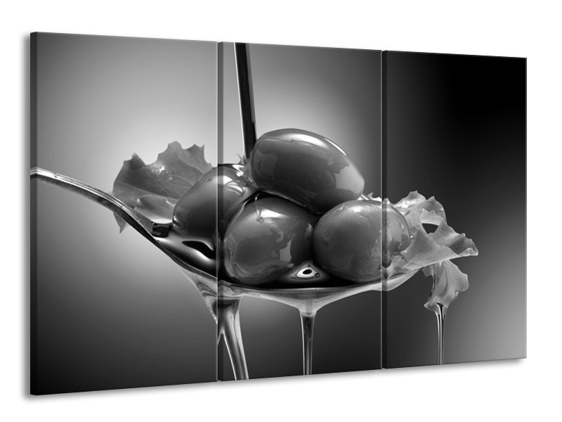 Canvas Schilderij Olijven, Keuken | Zwart, Grijs | 165x100cm 3Luik