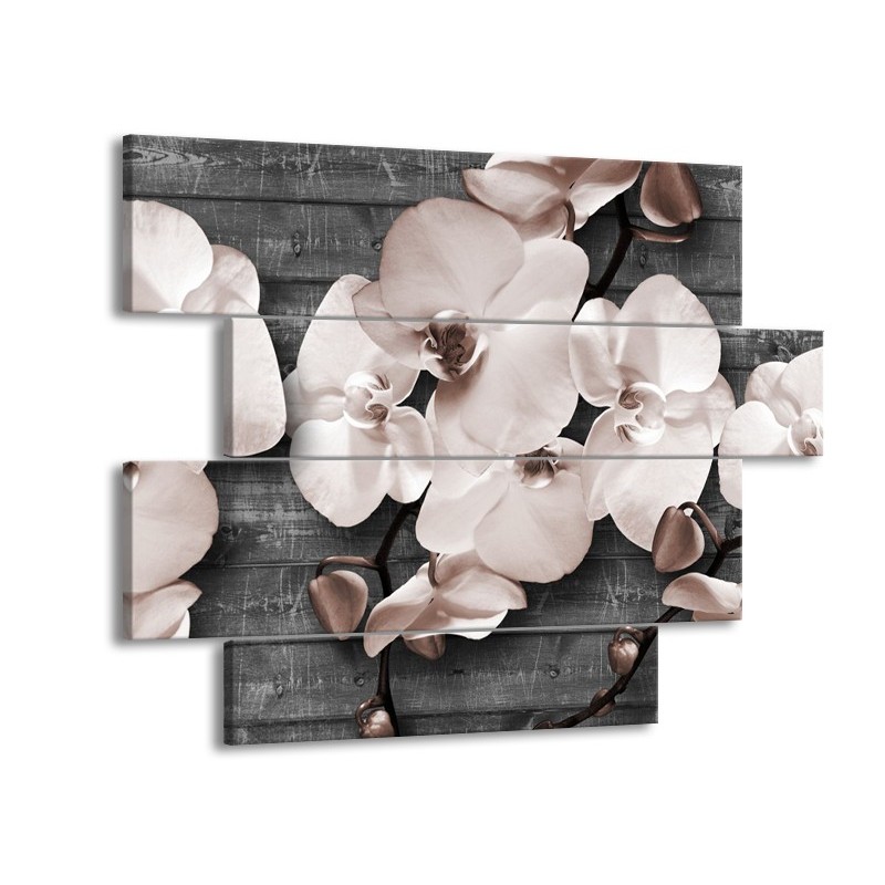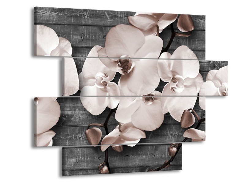 Canvas Schilderij Orchidee, Bloemen | Grijs | 115x85cm 4Luik