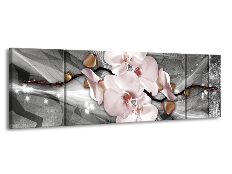 Canvas Schilderij Orchidee, Bloemen | Grijs | 170x50cm 3Luik