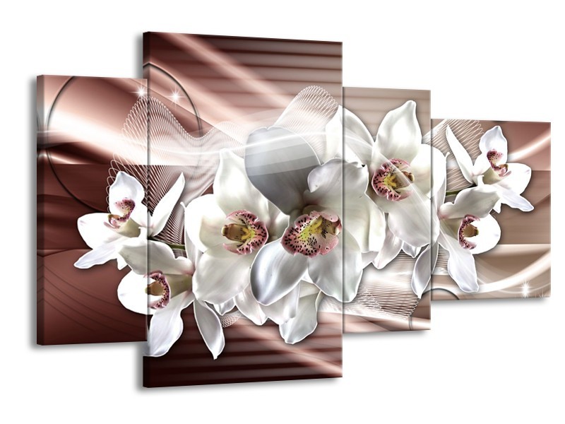 Canvas Schilderij Orchidee, Bloemen | Grijs, Bruin | 120x75cm 4Luik