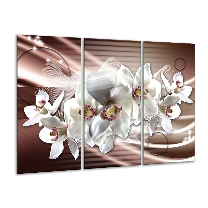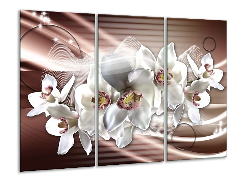 Canvas Schilderij Orchidee, Bloemen | Grijs, Bruin | 120x80cm 3Luik
