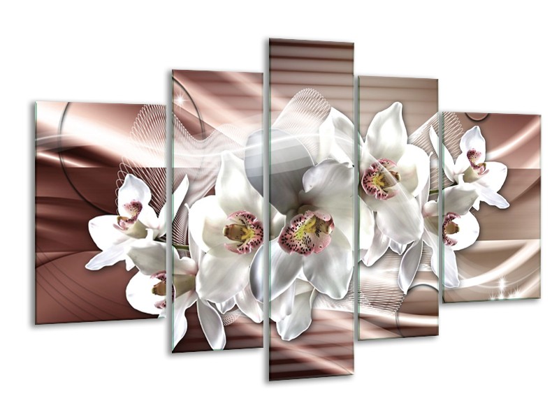 Canvas Schilderij Orchidee, Bloemen | Grijs, Bruin | 170x100cm 5Luik
