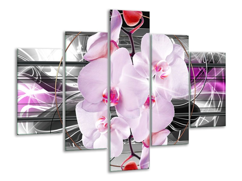 Canvas Schilderij Orchidee, Bloemen | Grijs, Paars | 100x70cm 5Luik