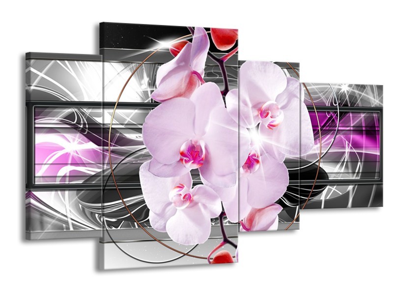 Canvas Schilderij Orchidee, Bloemen | Grijs, Paars | 120x75cm 4Luik