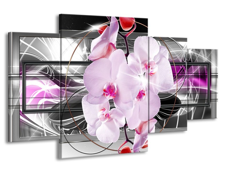 Canvas Schilderij Orchidee, Bloemen | Grijs, Paars | 160x90cm 4Luik