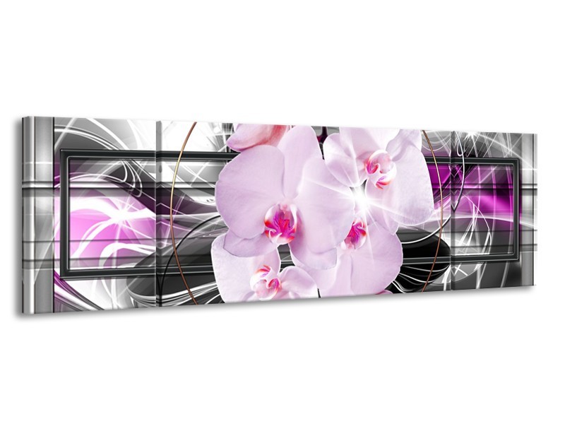 Canvas Schilderij Orchidee, Bloemen | Grijs, Paars | 170x50cm 3Luik