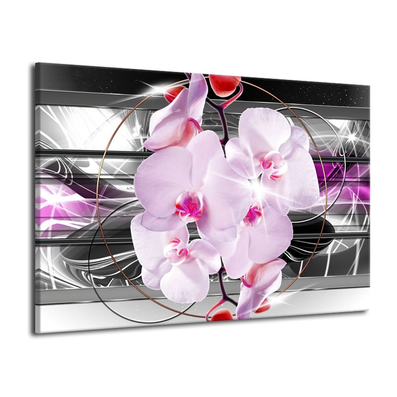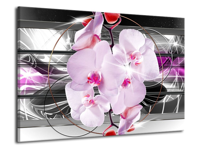 Canvas Schilderij Orchidee, Bloemen | Grijs, Paars | 70x50cm 1Luik