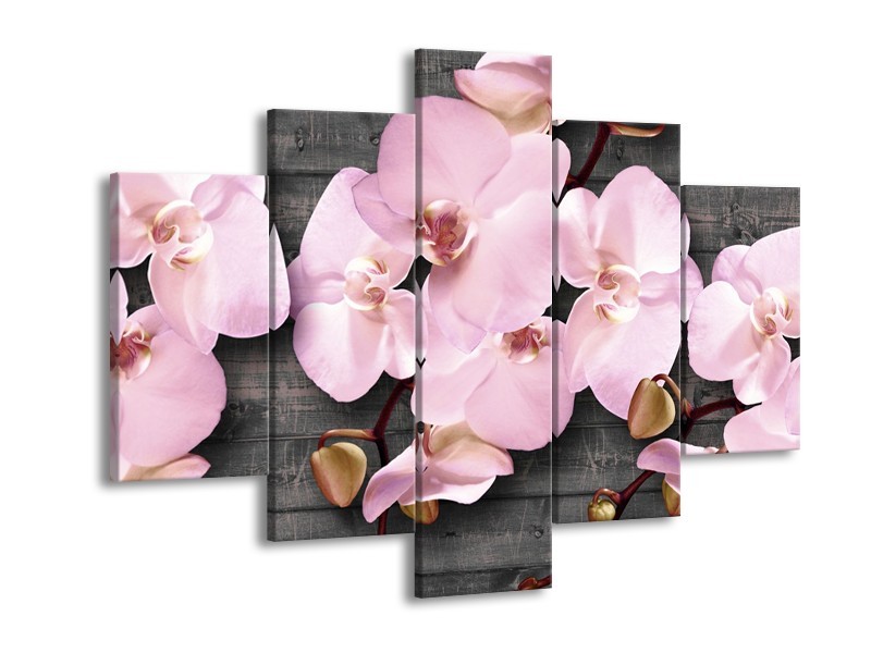 Canvas Schilderij Orchidee, Bloemen | Grijs, Roze | 150x105cm 5Luik