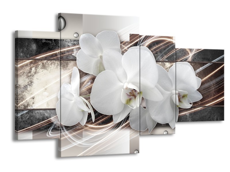 Canvas Schilderij Orchidee, Bloemen | Grijs, Wit | 120x75cm 4Luik