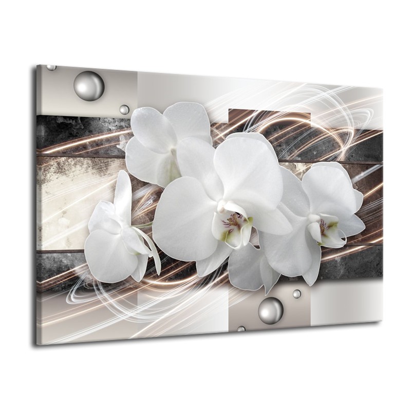 Canvas Schilderij Orchidee, Bloemen | Grijs, Wit | 70x50cm 1Luik