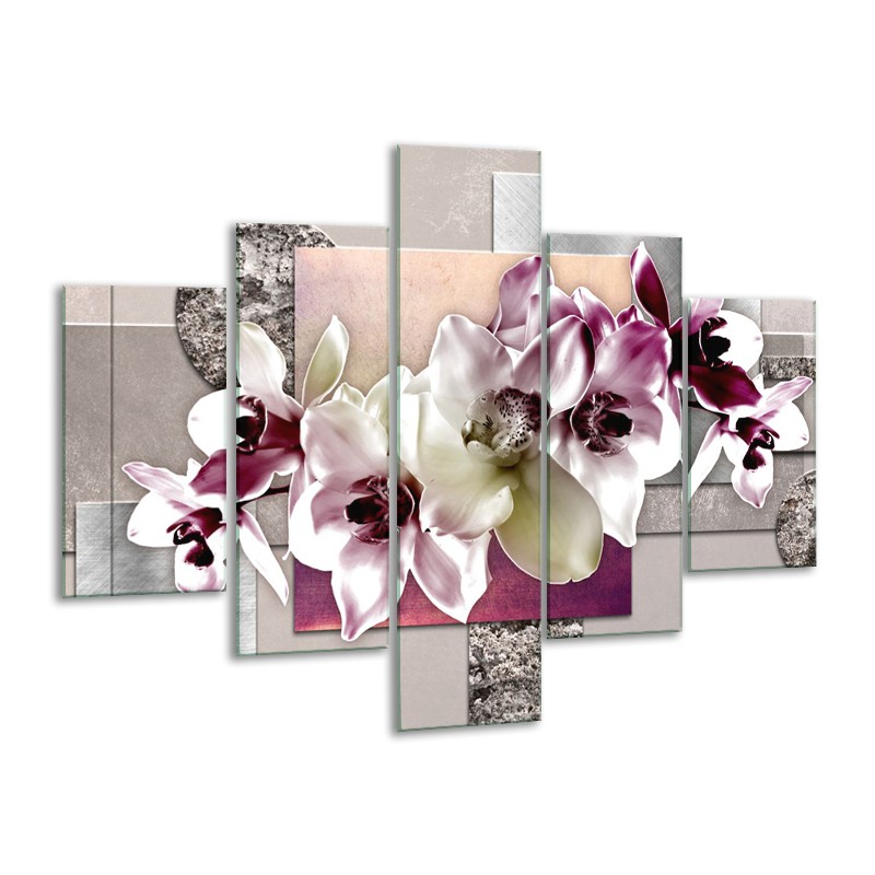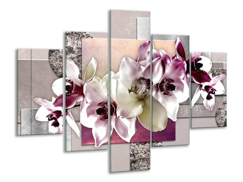 Canvas Schilderij Orchidee, Bloemen | Paars, Grijs | 100x70cm 5Luik