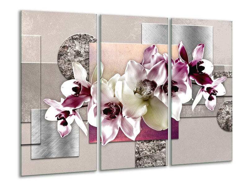 Canvas Schilderij Orchidee, Bloemen | Paars, Grijs | 120x80cm 3Luik