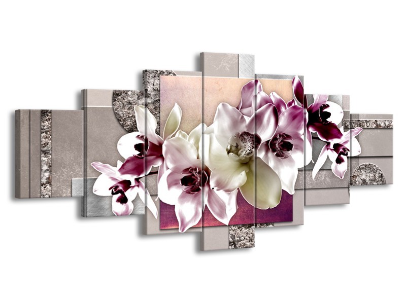 Canvas Schilderij Orchidee, Bloemen | Paars, Grijs | 210x100cm 7Luik