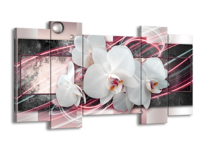 Canvas Schilderij Orchidee, Bloemen | Roze, Grijs, Wit | 120x65cm 5Luik