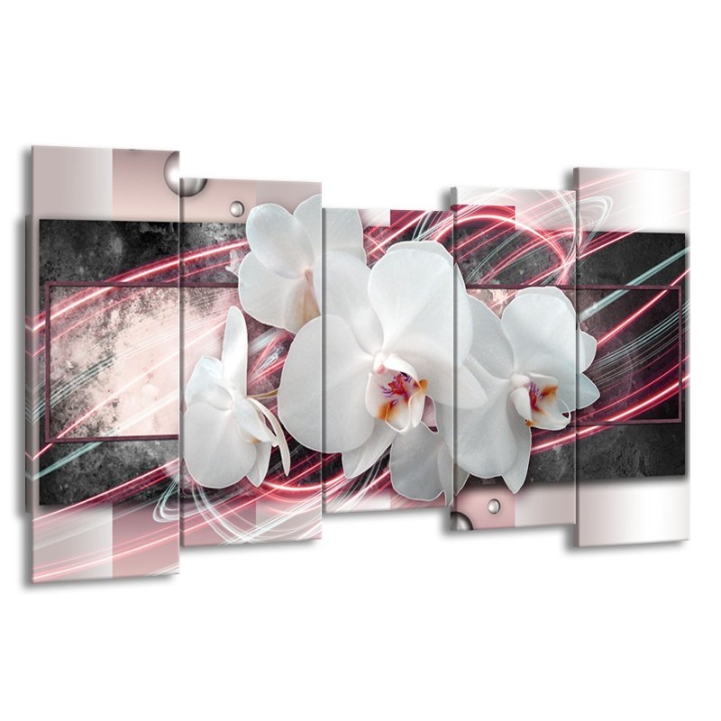 Canvas Schilderij Orchidee, Bloemen | Roze, Grijs, Wit | 150x80cm 5Luik