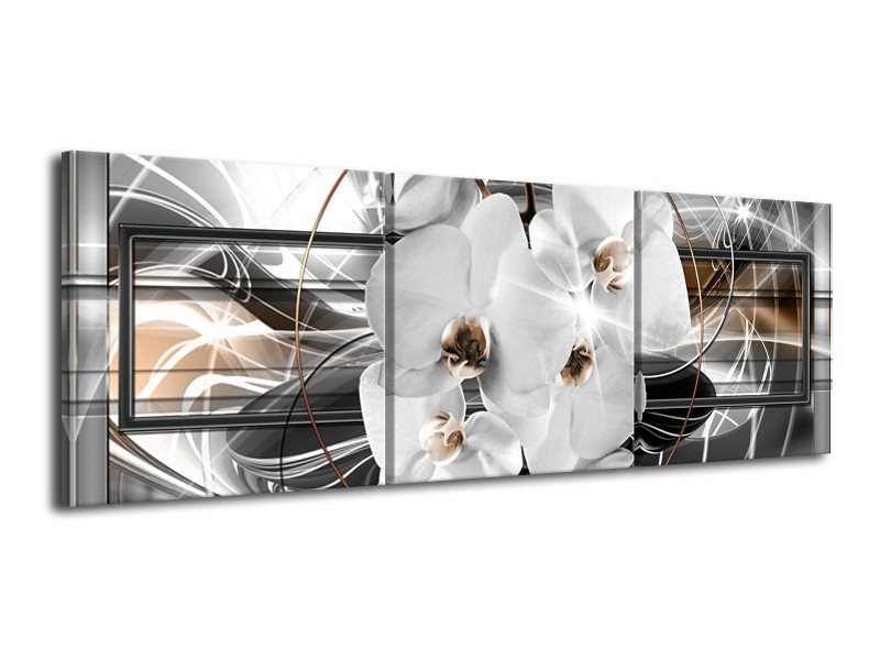 Canvas Schilderij Orchidee, Bloemen | Zilver, Wit | 120x40cm 3Luik