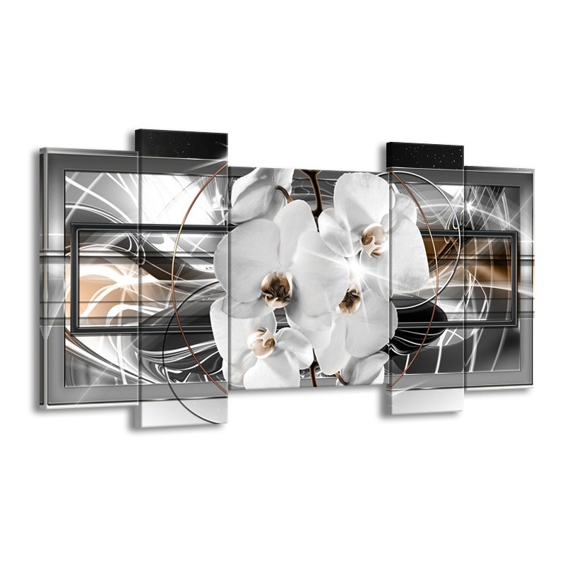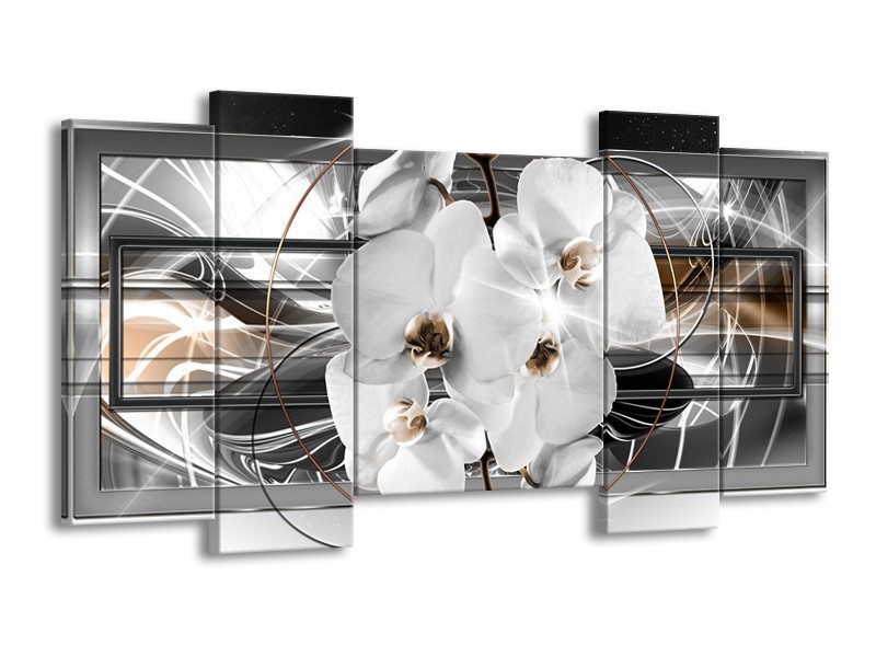 Canvas Schilderij Orchidee, Bloemen | Zilver, Wit | 120x65cm 5Luik