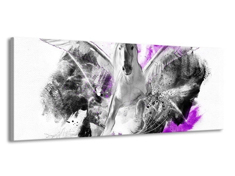 Canvas Schilderij Paard, Abstract | Paars, Grijs, Wit | 145x58cm 1Luik