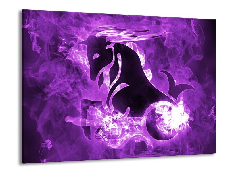 Canvas Schilderij Paard, Abstract | Paars, Zwart, Wit | 100x70cm 1Luik