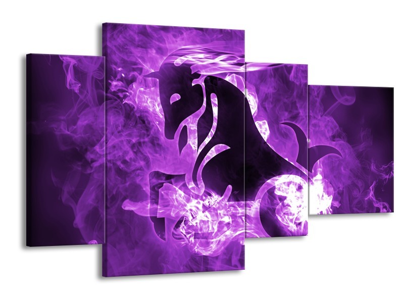Canvas Schilderij Paard, Abstract | Paars, Zwart, Wit | 120x75cm 4Luik