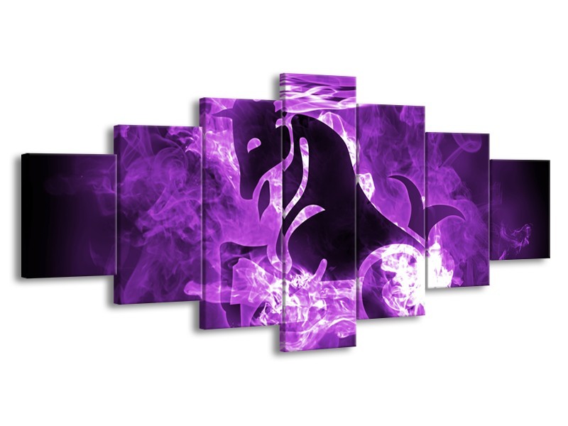 Canvas Schilderij Paard, Abstract | Paars, Zwart, Wit | 210x100cm 7Luik