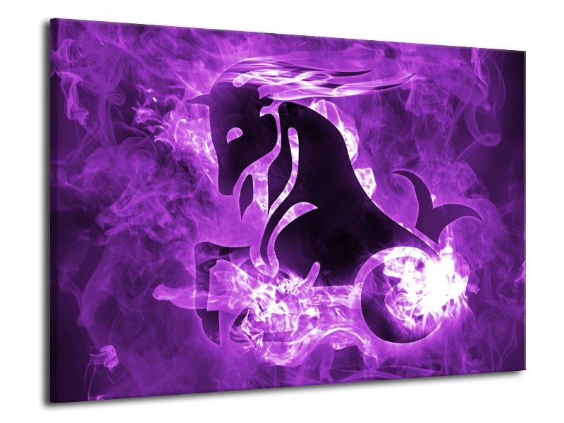 Canvas Schilderij Paard, Abstract | Paars, Zwart, Wit | 70x50cm 1Luik