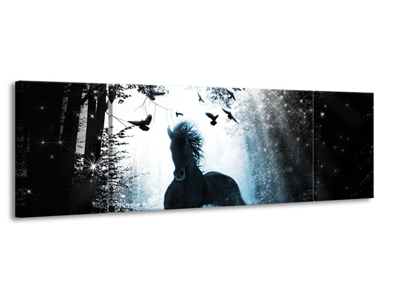 Canvas Schilderij Paard, Dieren | Blauw, Zwart, Wit | 170x50cm 3Luik