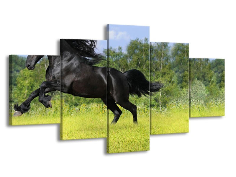 Canvas Schilderij Paard, Dieren | Zwart, Groen | 150x80cm 5Luik
