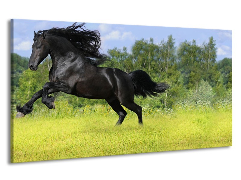 Canvas Schilderij Paard, Dieren | Zwart, Groen | 190x100cm 1Luik