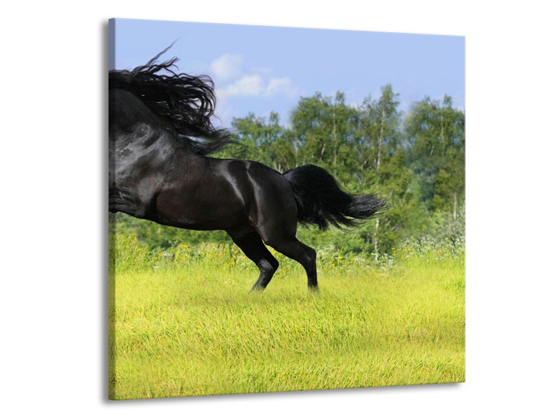 Canvas Schilderij Paard, Dieren | Zwart, Groen | 50x50cm 1Luik