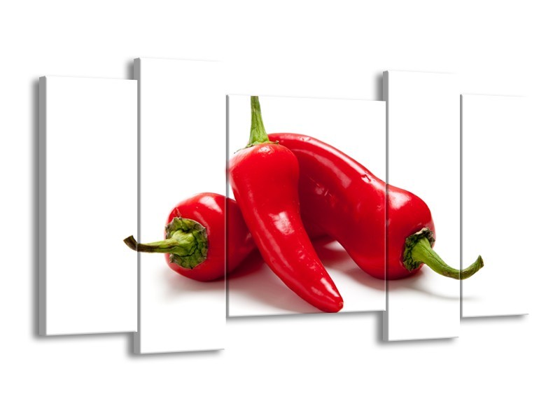 Canvas Schilderij Paprika, Keuken | Wit, Rood | 120x65cm 5Luik