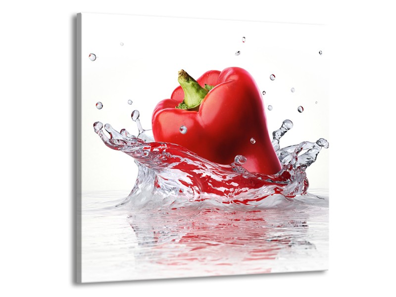 Canvas Schilderij Paprika, Keuken | Wit, Rood | 70x70cm 1Luik