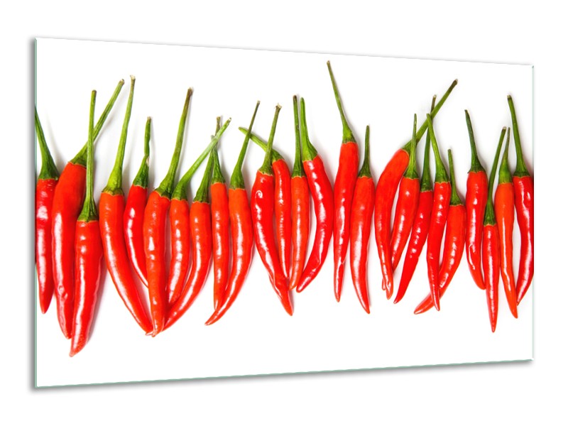 Canvas Schilderij Paprika, Keuken | Wit, Rood, Groen | 120x70cm 1Luik
