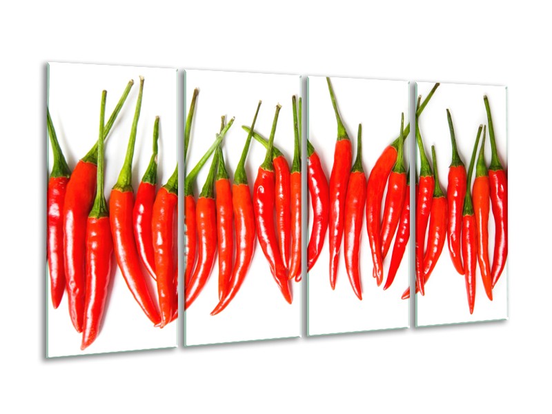 Canvas Schilderij Paprika, Keuken | Wit, Rood, Groen | 160x80cm 4Luik
