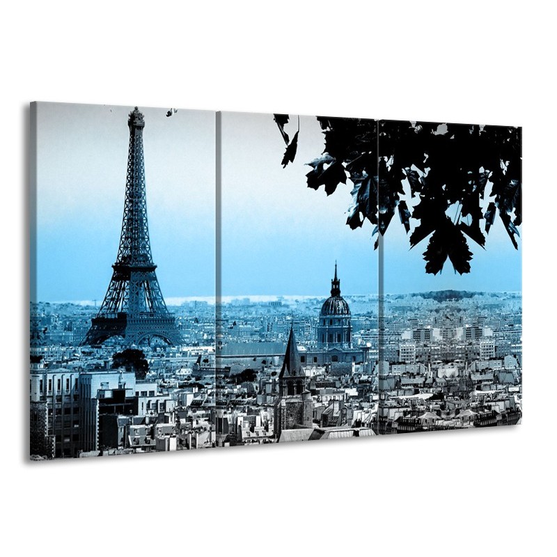 Canvas Schilderij Parijs, Eiffeltoren | Blauw, Grijs | 165x100cm 3Luik