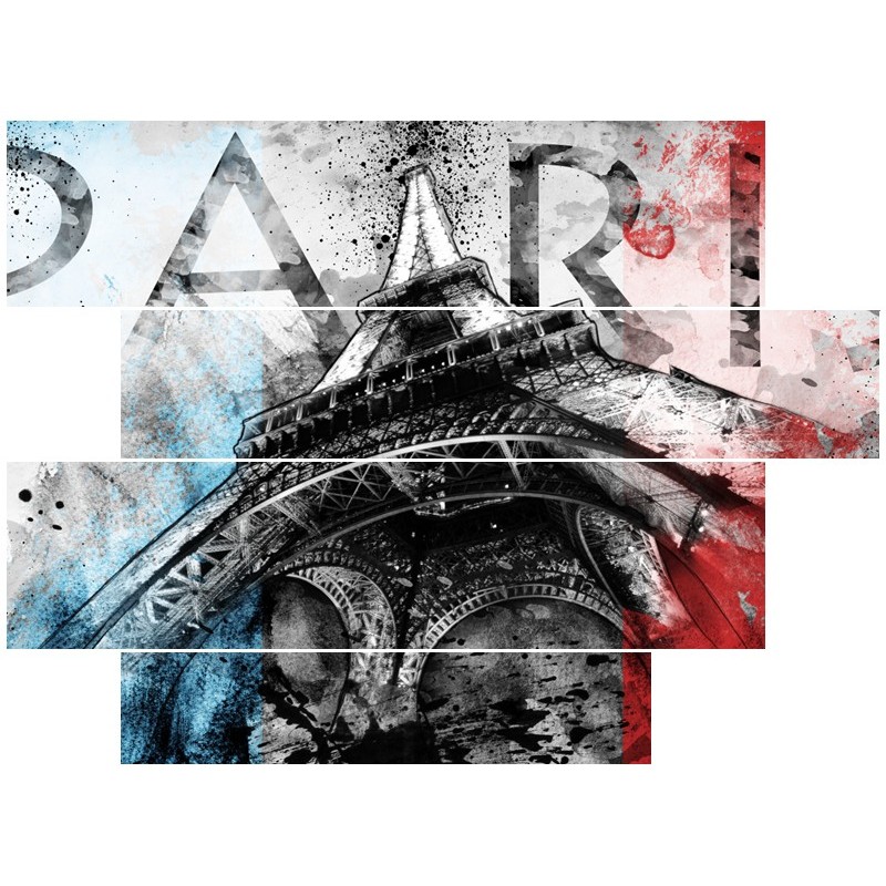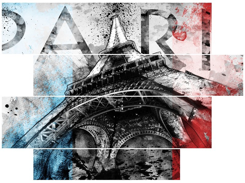 Canvas Schilderij Parijs, Eiffeltoren | Blauw, Rood, Zwart | 115x85cm 4Luik