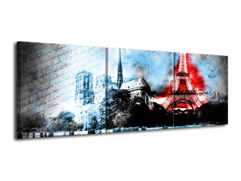 Canvas Schilderij Parijs, Eiffeltoren | Blauw, Rood, Zwart | 120x40cm 3Luik