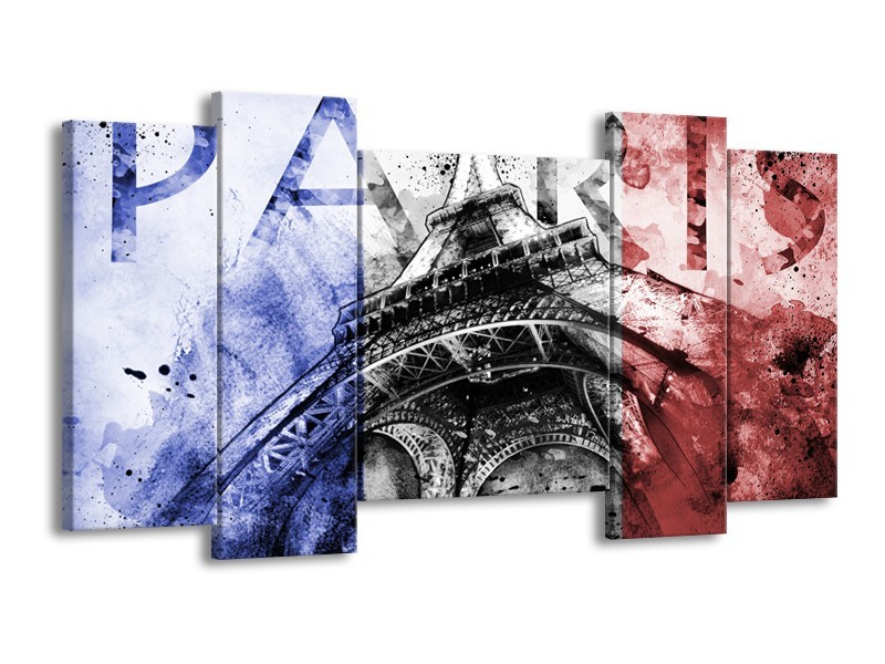Canvas Schilderij Parijs, Eiffeltoren | Blauw, Rood, Zwart | 120x65cm 5Luik