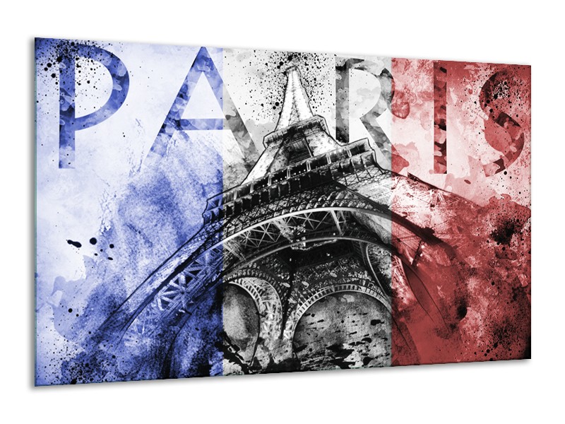 Canvas Schilderij Parijs, Eiffeltoren | Blauw, Rood, Zwart | 120x70cm 1Luik