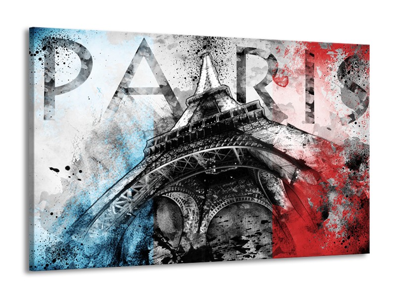 Canvas Schilderij Parijs, Eiffeltoren | Blauw, Rood, Zwart | 140x90cm 1Luik