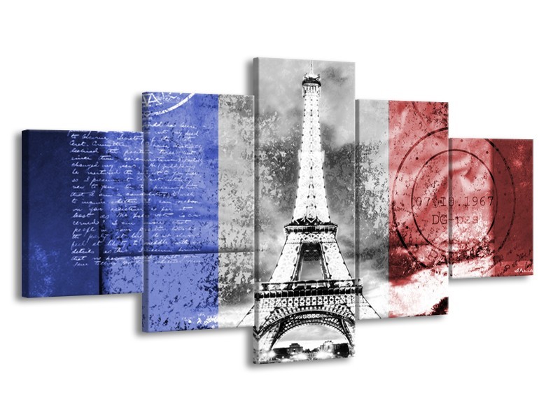 Canvas Schilderij Parijs, Eiffeltoren | Blauw, Rood, Zwart | 150x80cm 5Luik