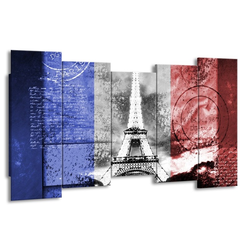 Canvas Schilderij Parijs, Eiffeltoren | Blauw, Rood, Zwart | 150x80cm 5Luik