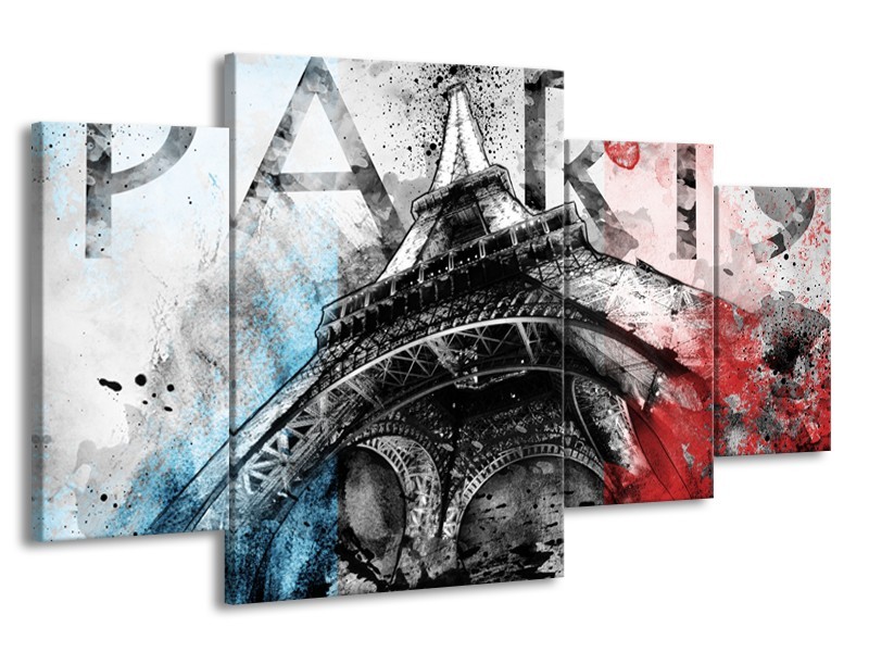 Canvas Schilderij Parijs, Eiffeltoren | Blauw, Rood, Zwart | 160x90cm 4Luik