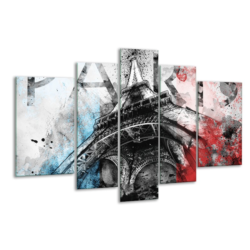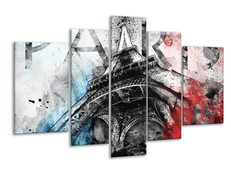 Canvas Schilderij Parijs, Eiffeltoren | Blauw, Rood, Zwart | 170x100cm 5Luik